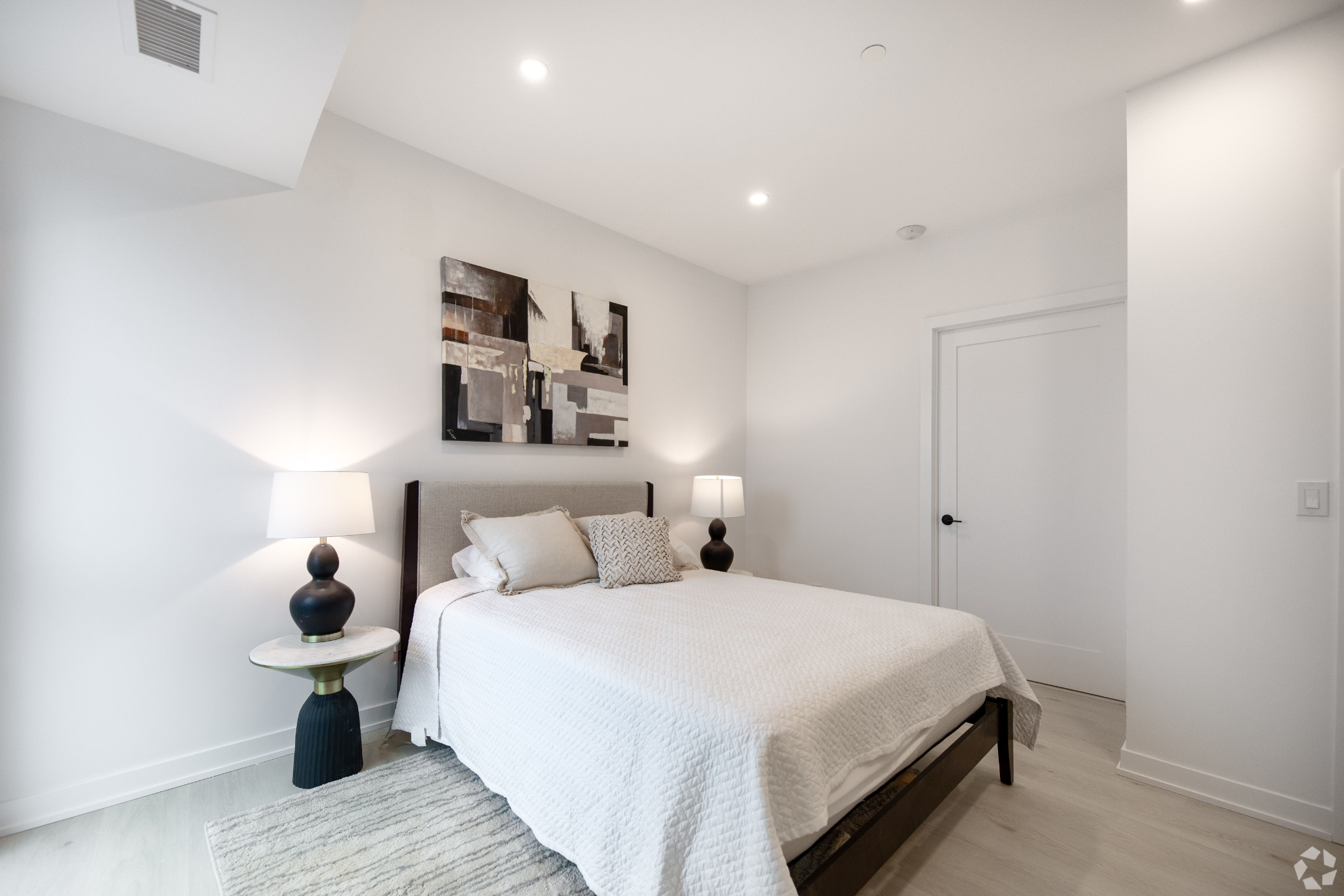 Bedroom with beautiful brand new vinyl laminate floors, recessed lighting, and ensuite bathroom privilege.